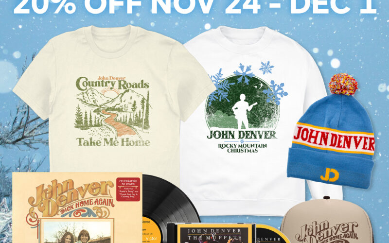 20% Holiday Sale in the Official Merchandise Store Posted on November 24, 2025December 30, 2025 HOLIDAY SALE: 20% off everything in the official John Denver merchandise store through Monday, December 1st! Shop early and save!